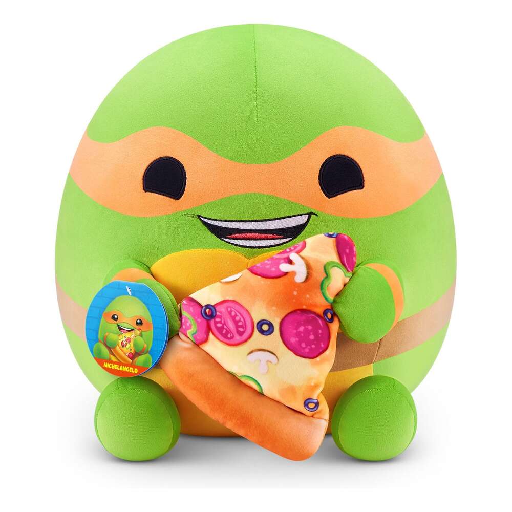 We're lean, we're green, and we're mean! Introducing ZURU Snackles—your favorite Teenage Mutant Ninja Turtles team in super soft plush form! Meet Leonardo, Donatello, Michelangelo, and Raphael, each clutching their beloved pizza snack, ready for action. Standing 14-inches tall, these Snackles are the perfect blend of softness and squishiness. But hurry, these limited edition Snackles won't stick around for long! Dive into their bios on the hangtag to uncover their unique Turtle power and join the adventure to collect them all. Cowabunga!