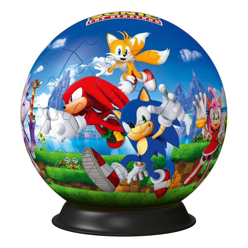 Build and display this fun Sonic the Hedgehog 3D Puzzleball! With 73 sturdy plastic pieces, it forms a 13 cm spherical puzzle featuring Sonic and friends. No glue needed and includes a stand for display—perfect for kids 6+ and a great gift for Sonic fans.