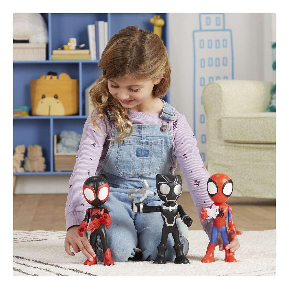 It’s Spidey time! Spidey and His Amazing Friends 9-inch Supersized Heroes action figures are made for big imaginations. These large-scale, poseable Super Hero action figures of Spidey and friends are big, friendly, and ready to play! Preschoolers can attach the included web accessory to the figure’s wrist and move the figure’s head and arms into fun action poses to recreate favourite scenes from the Marvel animated show on Disney Junior. These Spidey toys make great gifts for kids ages 3 and up who love the Super Hero adventures of the Spidey Team!