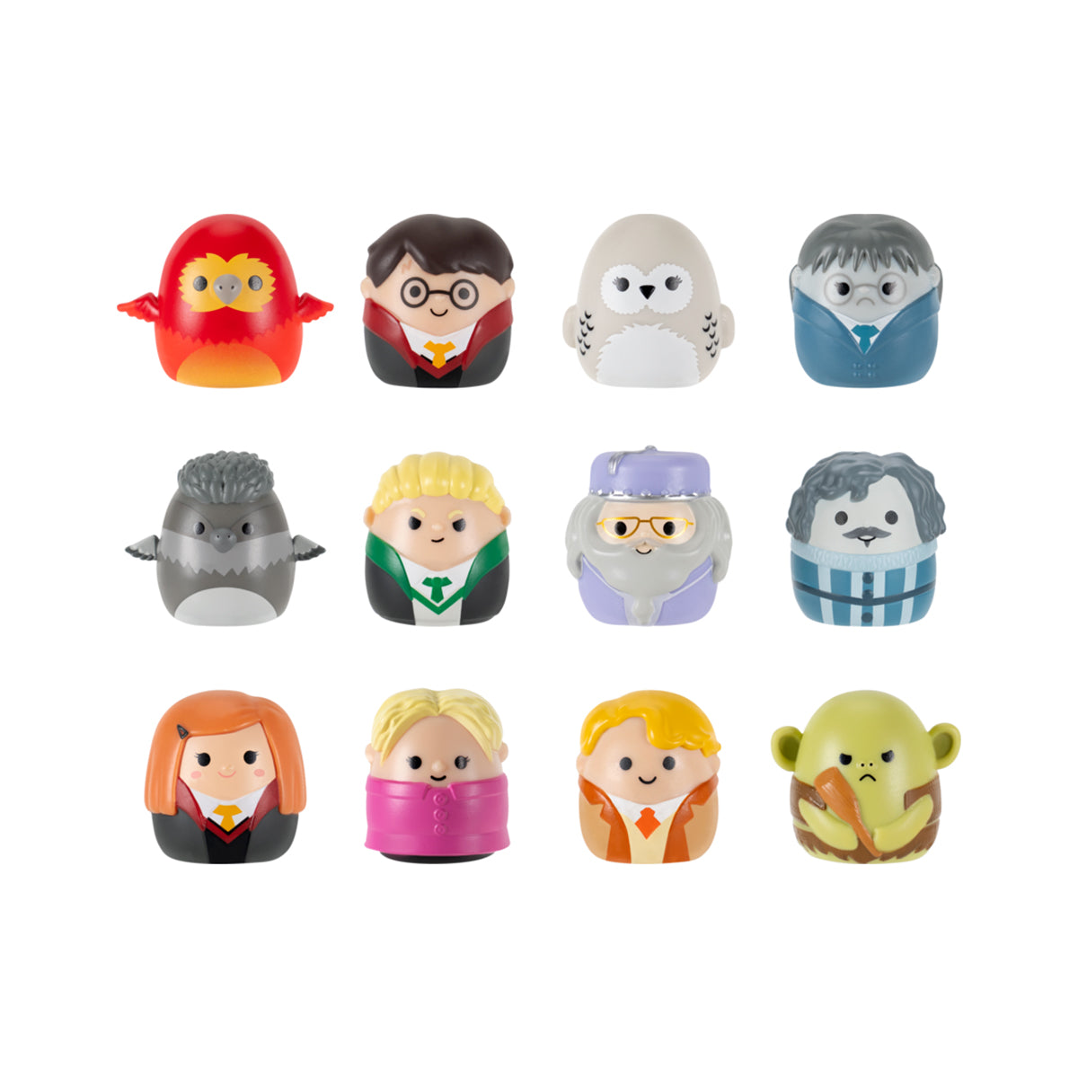 Cast a spell on your Squad with “Harry Potter” Squish-a-longs! This Squish-a-longs multipack includes 12 “Harry Potter” Mini-Squish—Harry Potter, Hedwig, Moaning Myrtle, Buckbeak, Draco Malfoy, Albus Dumbledore, Fawkes, Nearly Headless Nick, Ginny Weasley, Luna Lovegood, Gilderoy Lockhart, and Mountain Troll—in addition to Invisibility Cloak, Lion Head, School Bag, and Spectrespecs accessories for Mini-Squish styling. Play or display your “Harry Potter” Squish-a-longs at home, or attach your Mini-Squish to the included ring accessory to take the magic on the go! Only by Original Squishmallows and officially licensed by Warner Bros. Discovery. Join the Squad today!