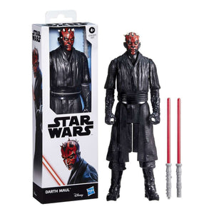 Kids can imagine big, out-of-this-world adventures with the Star Wars Titan Hero Series Darth Maul action figure! Featuring entertainment-inspired design and basic articulation, this Star Wars set includes a Darth Maul figure and red double-bladed Lightsaber™ accessory. Darth Maul stands at 12 inches tall (30 cm), making him the perfect size for kids ages 4 and up. Recreate favorite moments from a galaxy far, far away or imagine new stories with this poseable figure! Star Wars toys make great gifts for kids and are the perfect way to start off a young fan’s collection. Star Wars products are produced by Hasbro under license from Lucasfilm Ltd. Hasbro and all related terms are trademarks of Hasbro