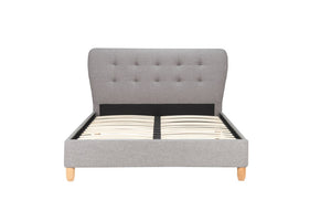 Upholstered in a wool like fabric the Stockholm features curved and buttoned headboard giving it a versatile look to suit any bedroom setting.