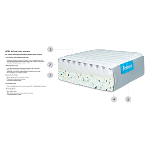 The Stompa S Flex Airflow Foam Mattress is a lovely Medium to firm mattress with some top quality features, such as the air flow technology which helps regulate temperature and moisture levels. With 5 unique comfort layers this mattress is sure to provide a comfortable nights sleep for all growing kids.