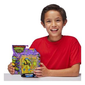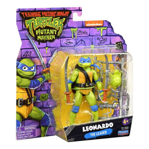 Get ready for the Mutant Mayhem figures and accessories, based on the new CG animated Teenage Mutant Ninja Turtles movie! Leonardo is the Turtles’ leader in blue, and now he’s a wannabe student in high school! As Leo and his brothers start to leave the nest—er, the sewer—he’s set on transforming them into a crime-fighting team that he can lead to victory. With some help from their rat-dad Splinter, the Teenage Mutant Ninja Turtles will be undefeetable! (Foot pun intended). Leonardo figure is 4.5” tall and designed to match his movie character. Set includes his signature katana and comes in a unique Mutant Mayhem package!
