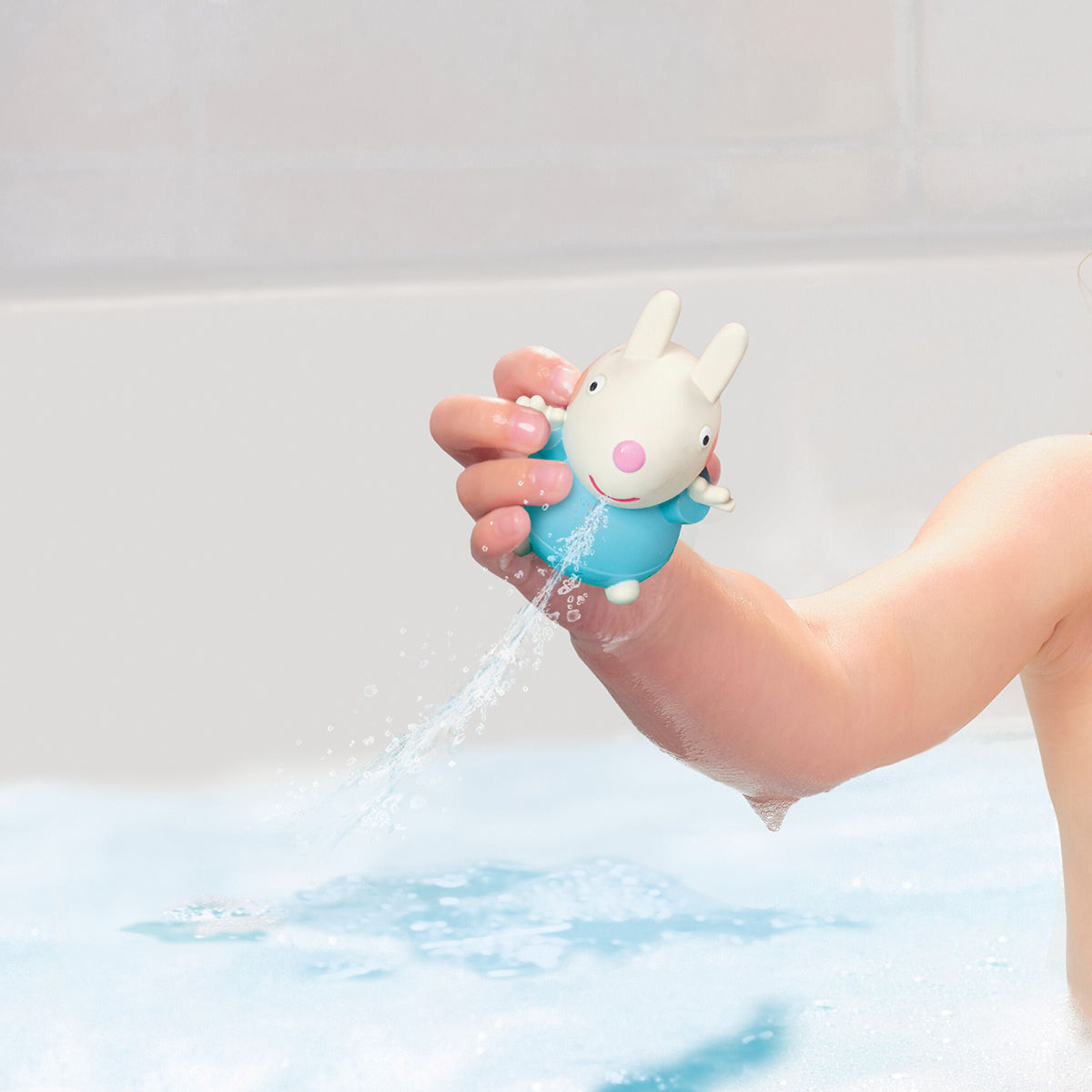 All part of a larger Toomies Peppa Pig bath toy collection. Drain after use and leave to air dry. Wipe clean with anti-bacterial solution/wipes. No batteries required. Suitable for children 18 months and over.
