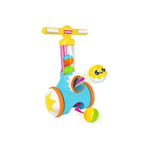Get toddlers on the move with the Pic n Pop ball popper! Scoop the balls off the floor as you ride over them. Squeeze the handlebars and send the ball popping out! Scoot around chasing every last ball, picking and popping over and over. Includes 5 balls. Suitable for indoor and outdoor use. No batteries required.