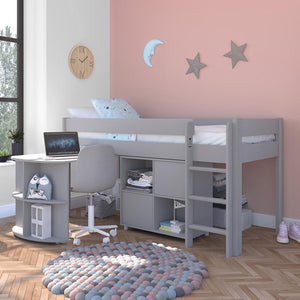 Uno Grey Midsleeper With Pull Out Desk And Cube Unit