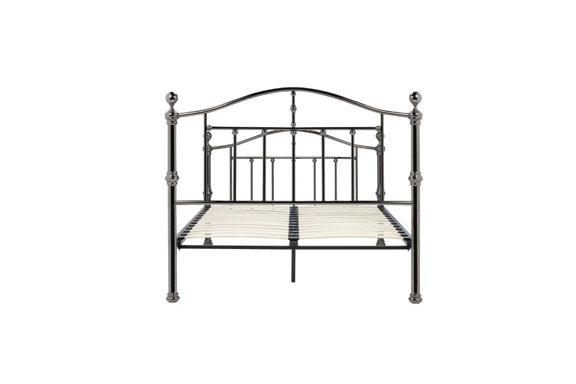 Constructed from steel, this frame is finished using an electroplating paint process and is available in black nickel. Please note that the Victoria frame has black side rails.