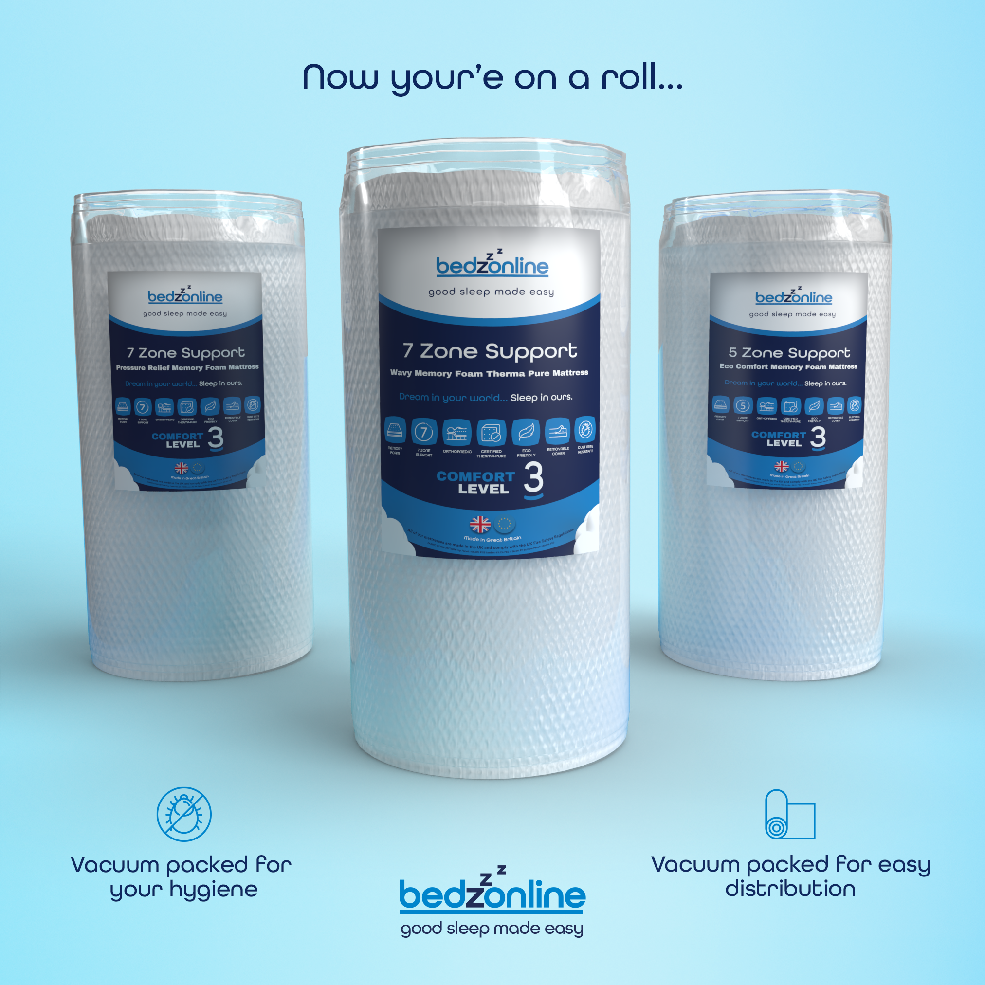 Rolled mattresses have the advantage of being easy to transport, especially to upstairs bedrooms. When unrolled, they expand fully and are usually ready to sleep on within 48 hours.