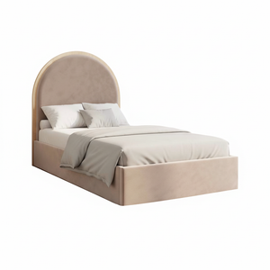 The WoodyWinks Kids Bed offers a warm and inviting sleep space with its gently curved headboard and soft, neutral upholstery. This charming bed provides a secure and comfortable environment for your child to rest and dream, blending seamlessly with various bedroom themes and promoting a sense of calm.
