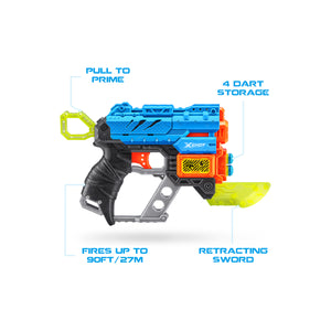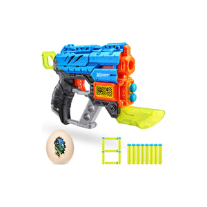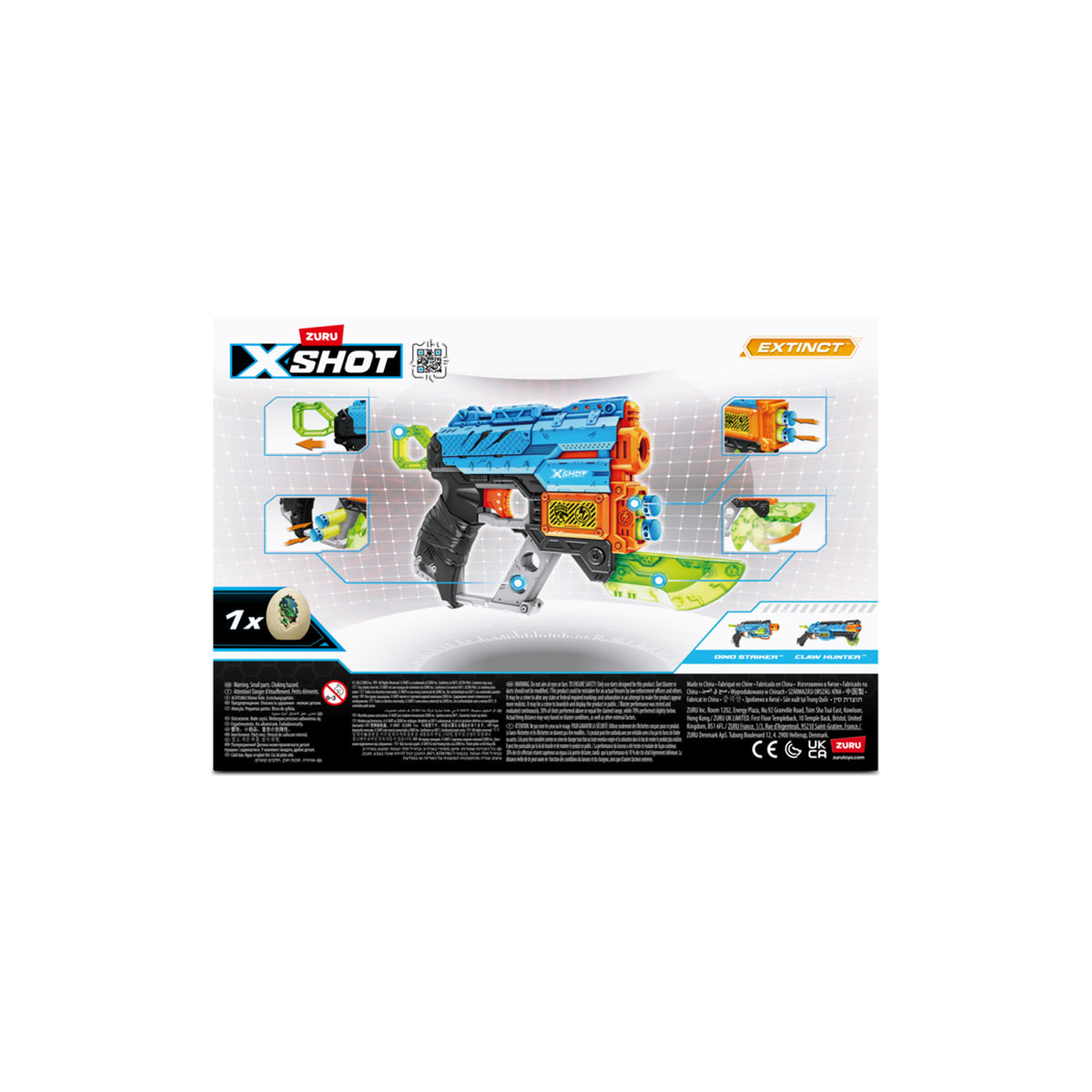 Get ready for the Dino invasion with the X-Shot Dino Attack Extinct blaster! This epic dino destroyer fires with extreme power and accuracy from up to 27m / 90 feet away. This blaster has an easy pull to prime mechanism to blast Dino eggs back to extinction! With its single dart barrel and additional 4 dart storage, you can stay locked and loaded through even the longest battles. Use your Dino egg for target practice and flip out the retractable sword to tackle even the most diabolical Dinos. No Dinosaur is a match for you with the X-Shot Dino Attack Extinct!