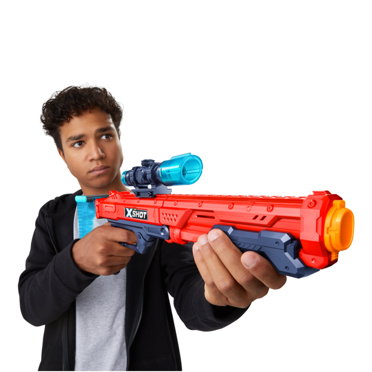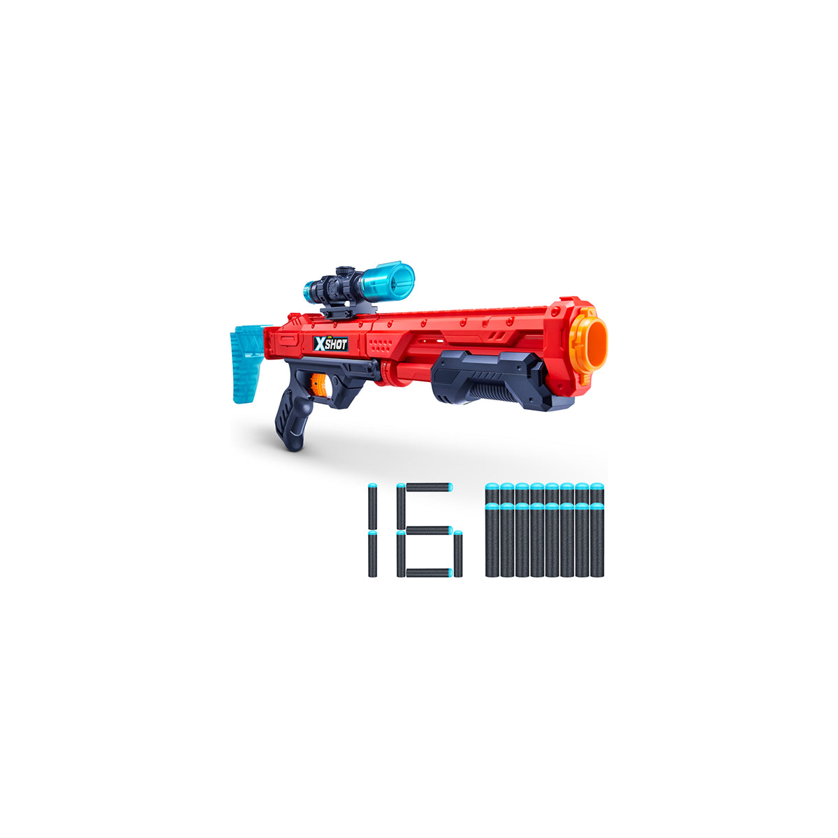 Exercise precision vision with the X-Shot Excel Hawk Eye! This blaster takes target practice to the next level. Use the detachable scope and pump-action mechanism to shoot with accuracy from up to 27m / 90 feet away! The tactile grip handle stabilises your shot so you can fire with precision while the extra dart storage ensures you’re always ready to fire your next round. Never miss a chance to strike with the X-Shot Hawk Eye.