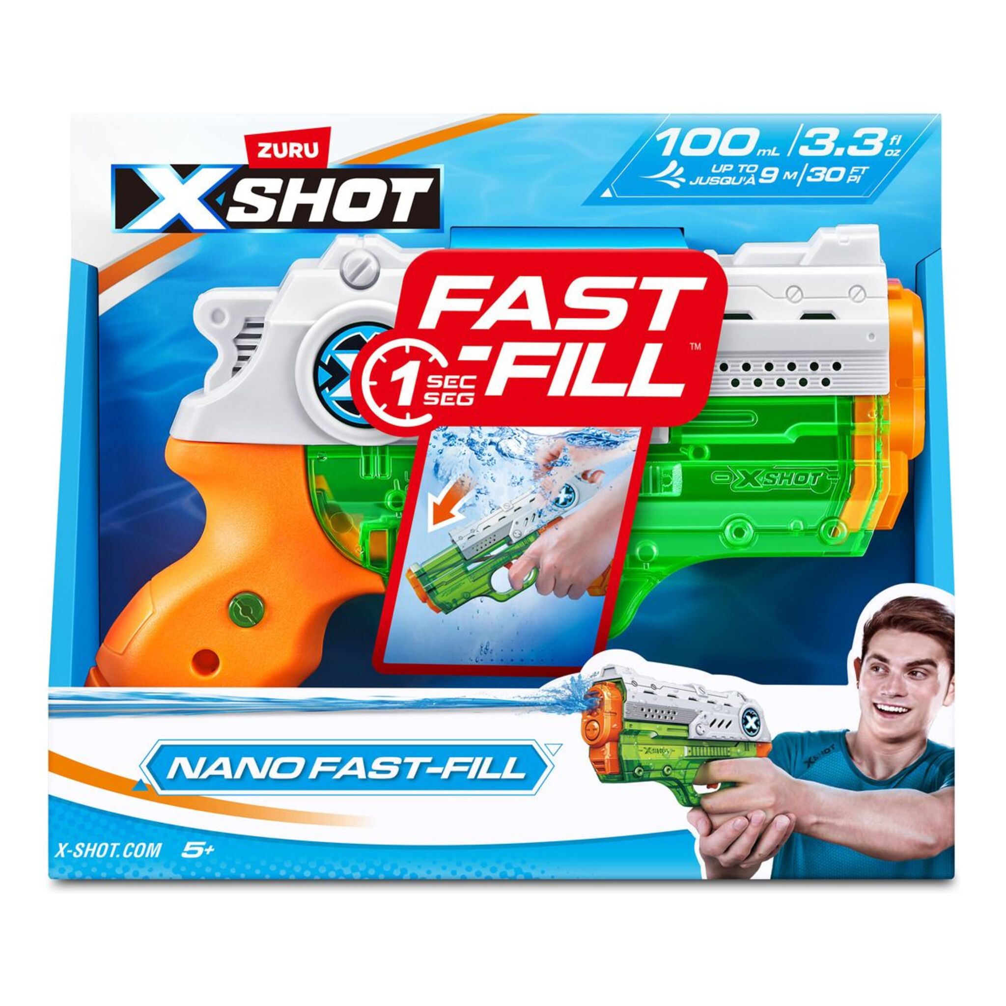 XSHOT Fast-Fill is the fastest filling water blaster ever created. The XSHOT Fast-Fill Nano allows you to refill your blaster in just 1 second and get back to the water blaster action long before your opponents. Just dunk, fill and close with rapid sealing technology. Don’t let the Nano's size fool you! Small but powerful, blast up to 30 feet / 9 meters with its 100mL/3.3 fl. oz. water capacity tank!