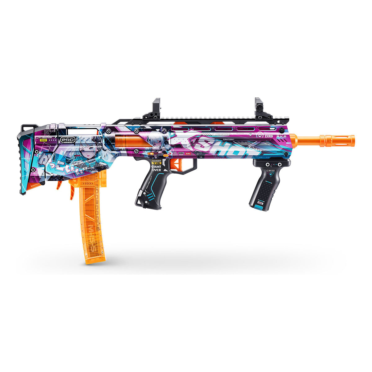 Go Pro in serious style with the XSHOT SKINS Pro Series 1 Anime Long Shot Blaster. The Blaster is designed to achieve accuracy and distance in every blast. Equipped with 2 quick release dart clips, it is compatible with both full and half-length darts, both including XSHOT Air Pocket Technology for a further, faster and more stable flight. Use Slam Fire Action to blast through the 20 dart clip in seconds and take out targets up to 43m / 140 feet away! Level up with the latest and greatest in the XSHOT SKINS Pro Series!
