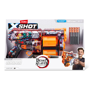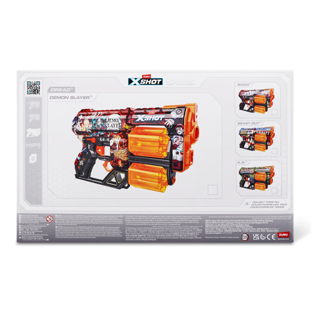 XSHOT Skins brings the in-game experience of skinning your blaster into the real world, choose your Skin and join the battle. Get ready for mayhem with the XSHOT Skins Dread Demon Slayer blaster. With a 12-dart capacity, the Dreads’ double trouble rotating barrels mean you are locked and loaded for fun.